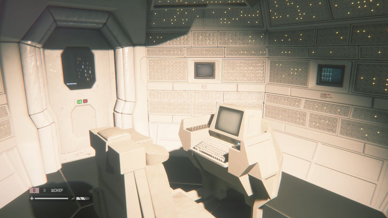 - Игра очень точно воспроизводит киношный ретро-футуризм космических кораблей с ЭЛТ-мониторами, бабинными магнитофонами и аналоговыми помехами на видео. Здорово воспроизводен общий дизайн помещений, оборудования и гаджетов. Все громоздкое, угловатое и солидное.